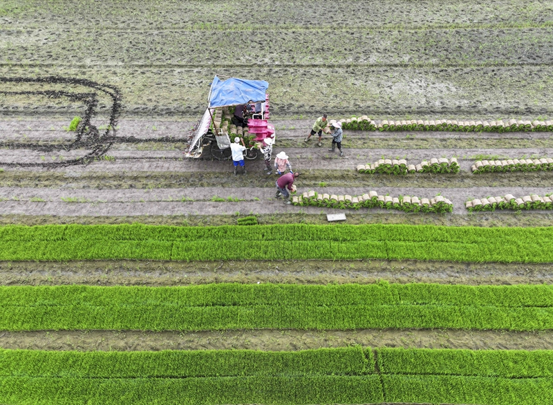 夏至将至,各地农民忙碌在田间地头抢抓农时忙插秧,为秋粮丰收打好基础。