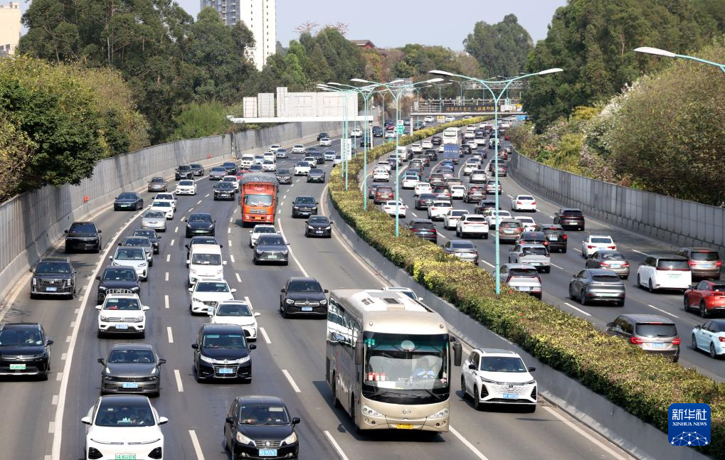 这是2月23日拍摄的广州环城高速公路上的车流。